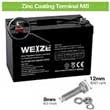 The battery comes with terminal bolts, and the size of them is 5/16″ or 8 mm or 0.314 inches in decimal. I listed them in various formats because their official website doesn't have this info labeled clearly.